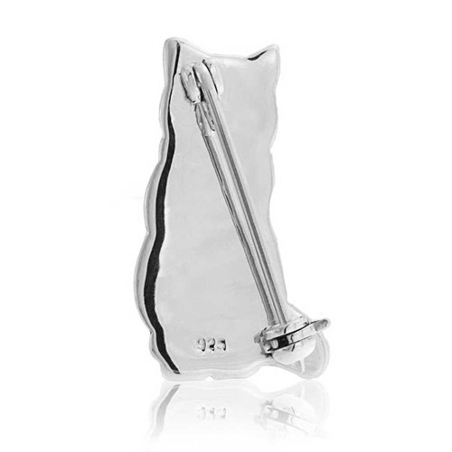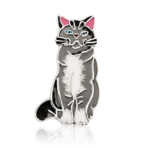 Cool cool kitty. Our lovely cat pin brooch features a grey and white enamel feline friend with black, pink and red enamel accents for a very sweet look. Animal jewelry can add a fun sense of style to your everyday look and our kitty cat sterling silver pin is a super cute choice. A perfect gift for everyone you know who wears kitty cat jewelry, this adorable silver cat brooch will make a great gift. Our charming animal brooch is made entirely in sterling silver and features five colors of enamel, detailing the pretty kitty purrrfectly. Have some fun with fashion this season and order one today.Feature