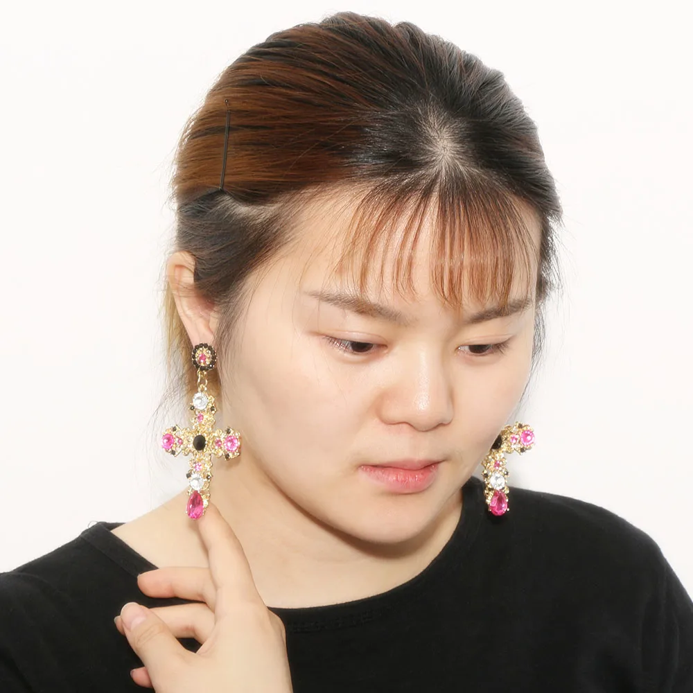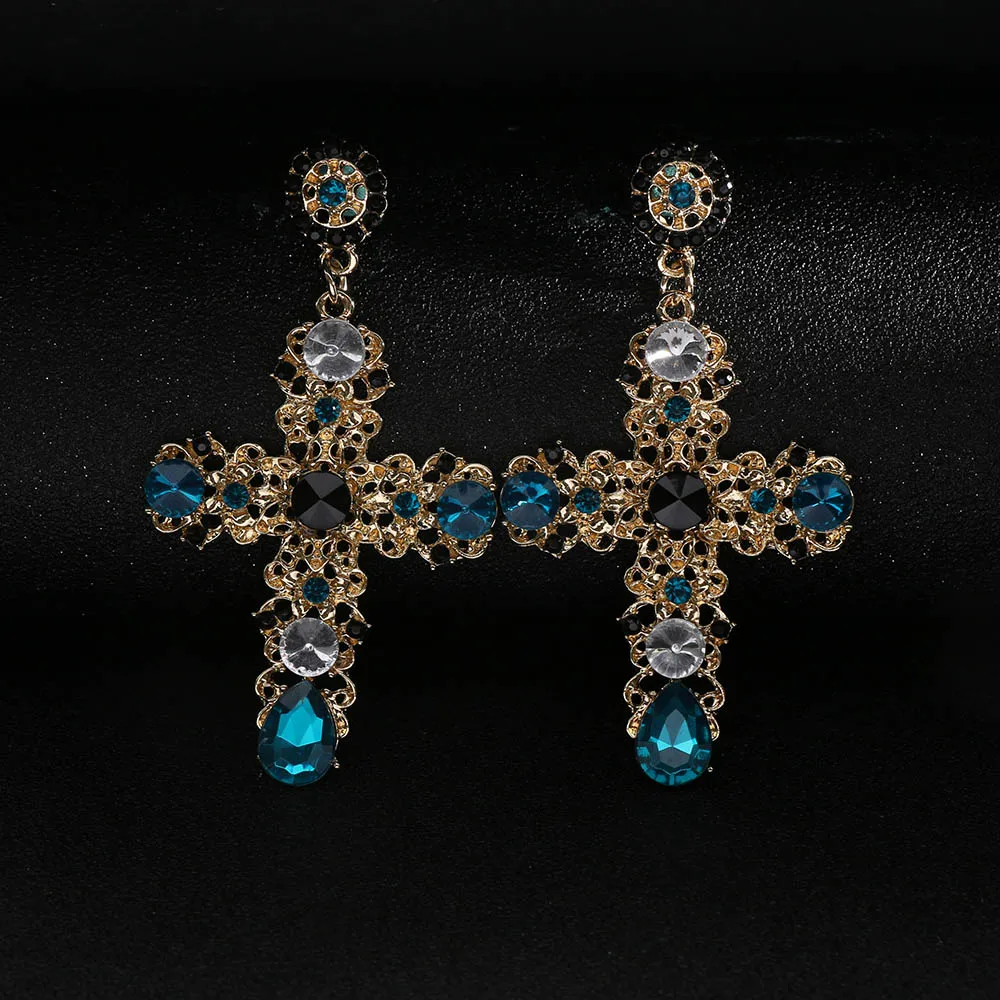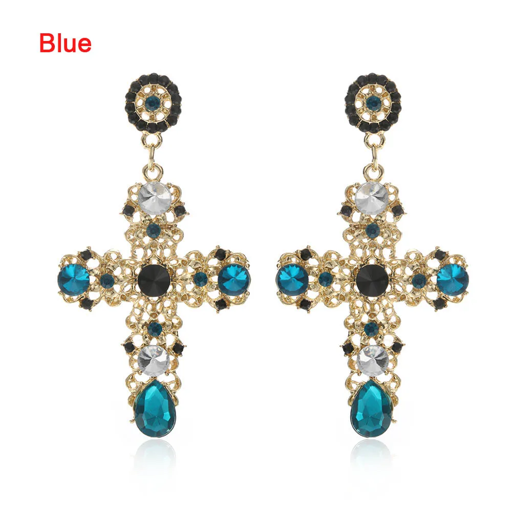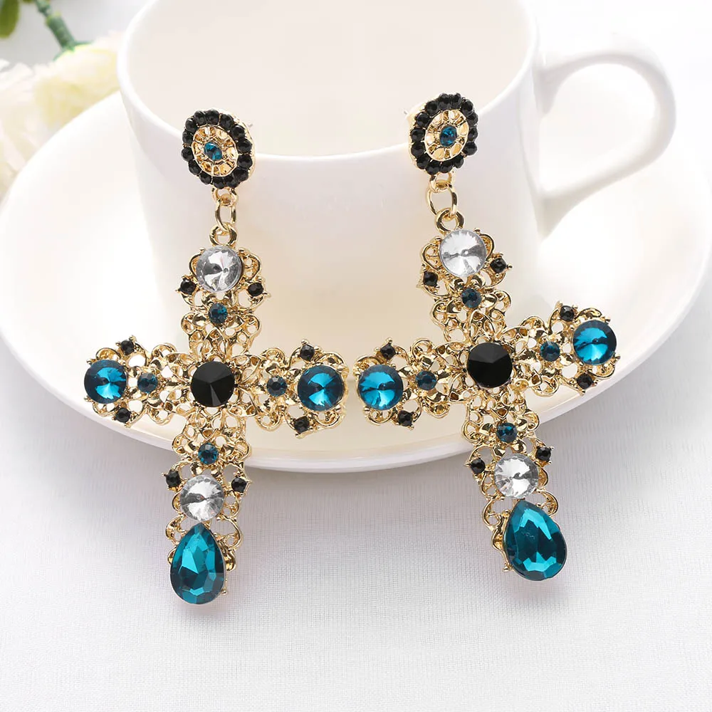 Model Number:Gold Color Colorful Crystal Cross Dangle Earring