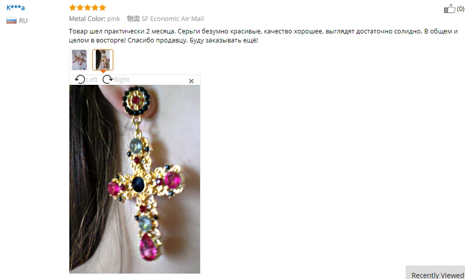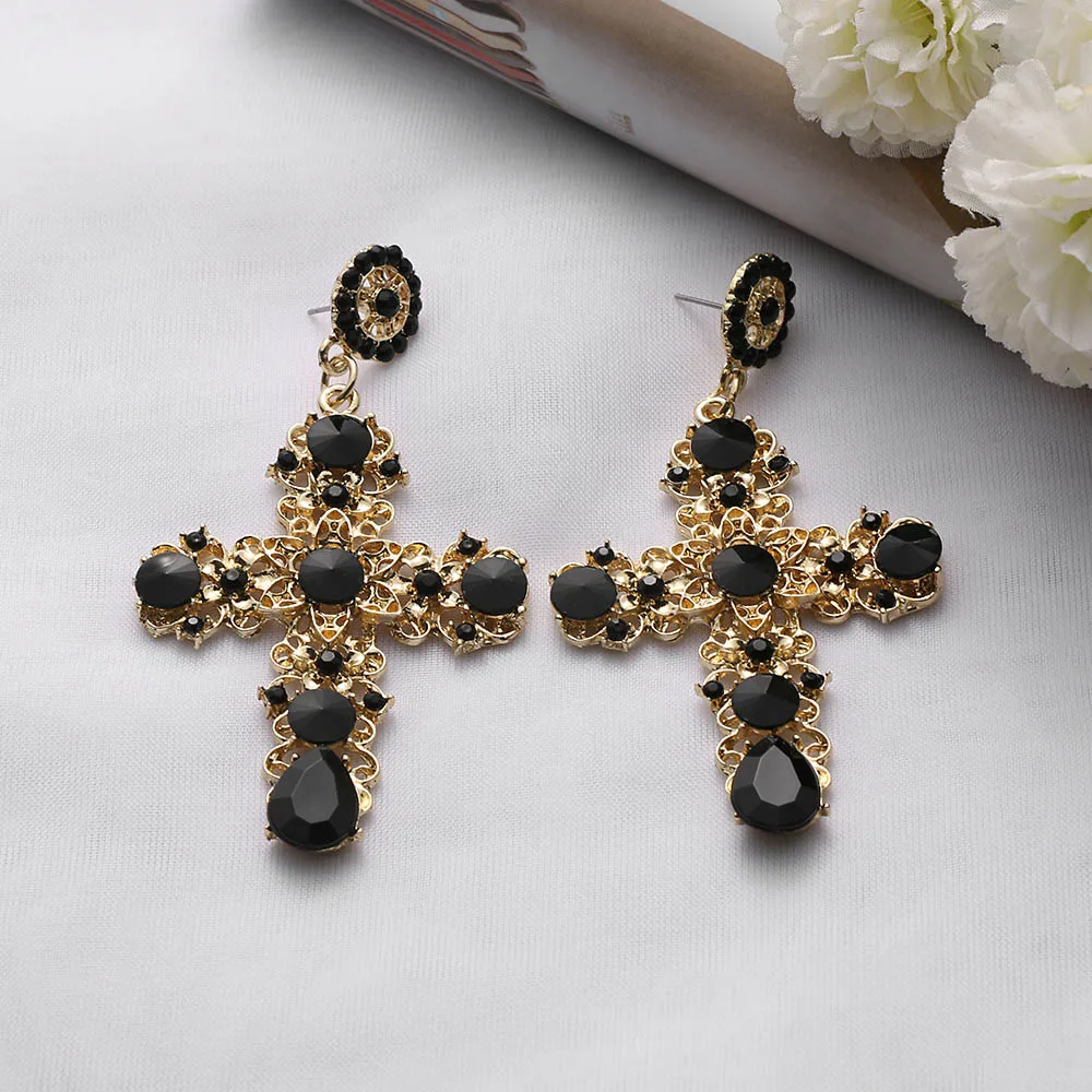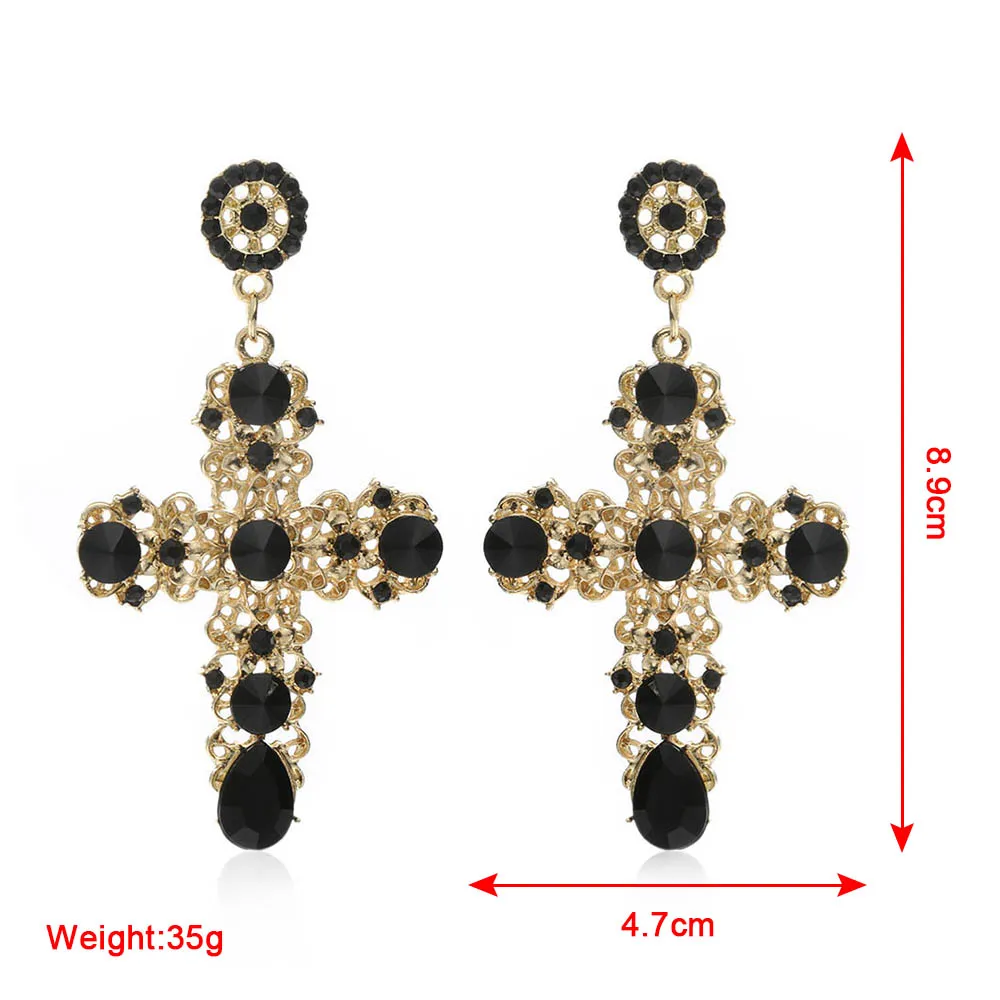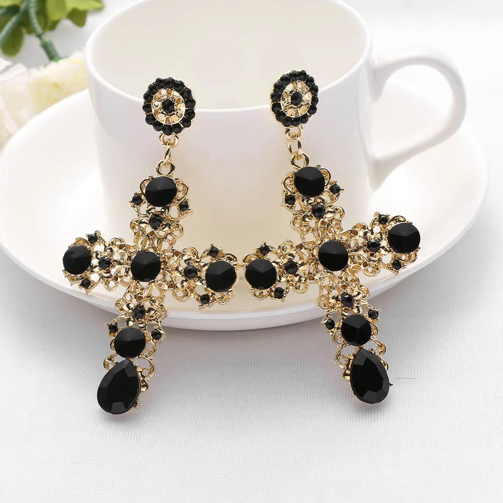 Model Number:Gold Color Colorful Crystal Cross Dangle Earring