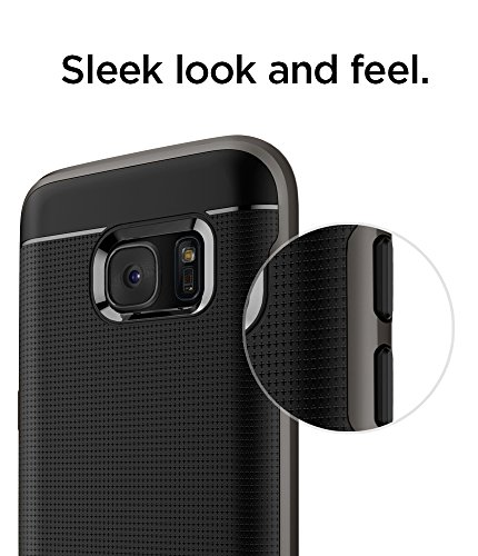 The Neo Hybrid case for the Galaxy S7 puts the focus on its stylized slimness and reinforced perimeter protection through key features of the polycarbonate bumper and TPU encasement. The metalized buttons are miniscule in size but hefty in style and provide fluid feedback for an easy press. The outside TPU flaunts a distinct pattern for extra grip.Feature