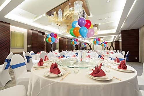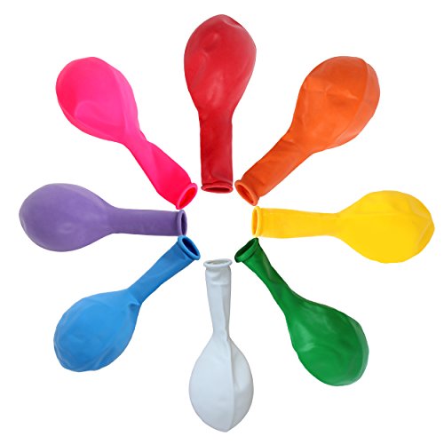 -. Feature : 12" Multicolored Balloon Pack: Each of these beautiful bags contains approximately 144 pcs of vibrant colored balloons in a mix of 8 bright solid and pastel colors: blue, pink, red, yellow, orange, purple and white, just what you will need to light up the venue! / This variety balloon kit comes equipped with 2 spools of 65 yards pearl white crimped curling ribbon and 1 Dual Action Handheld Balloon Pump air inflator to help you fill air fast with two way inflation (pushing in and pulling out), you'll never need to do last minute errands for anything elsle! / Guranteed Premium Quality Thick Latex makes sure your balloons stand up to test against hellium and air at any birthday party, special events or weddings, all night long! / Each balloon measures about 12 inches in diameter when fully blown, the perfect size for party favors, balloon styling and party decorations, AND they are fun for people from all different age groups. Everybody loves balloons! / Order now: Why wait till the last minutes? Order your party supplies and balloons ahead of time so you are ready to go! Why limit yourself to only one box? Buy as many as you want, and lend some extra hands to get the party started at preparation!