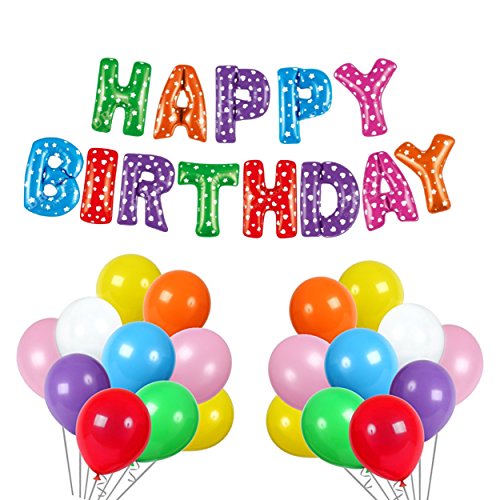 -. Title : 12 Inch Assorted Colors Latex Balloons with Crimped Curling Ribbon and Double Action Air Pump Birthday /Party/Events balloons