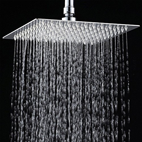 Rain Shower Head, UNILLAP Square Wall Mounted ShowerHead Waterfall Ultra Thin 304 Stainless Steel Chrome with Silicone Nozzle (8 Inches)