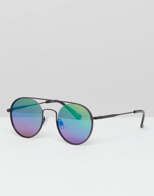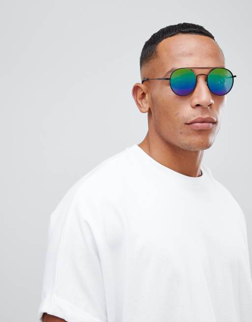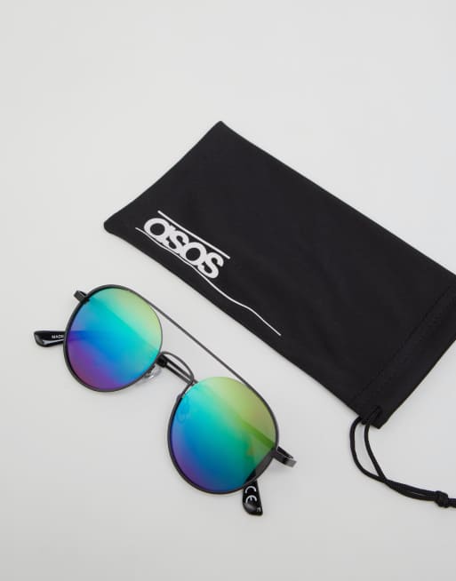 ASOS DESIGN round sunglasses in black metal with rainbow mirrored lens