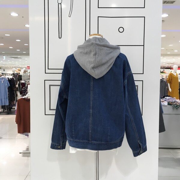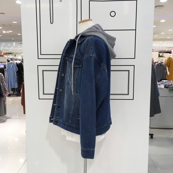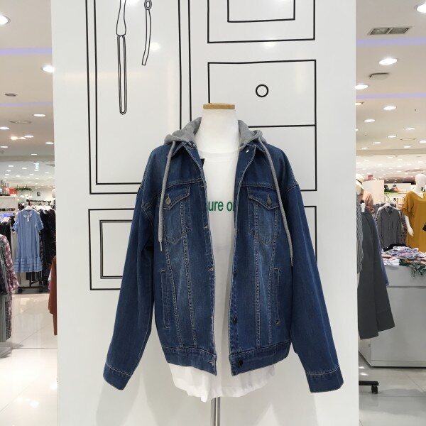 후드 탈부착이 가능한 데님자켓입니다. 기본적인 디자인으로 캐주얼하게 입으시기 좋습니다!