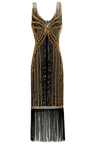 -. Title : Metme Women's Vintage 1920s Inspired Fringed Art Deco Gatsby Evening Party Dress