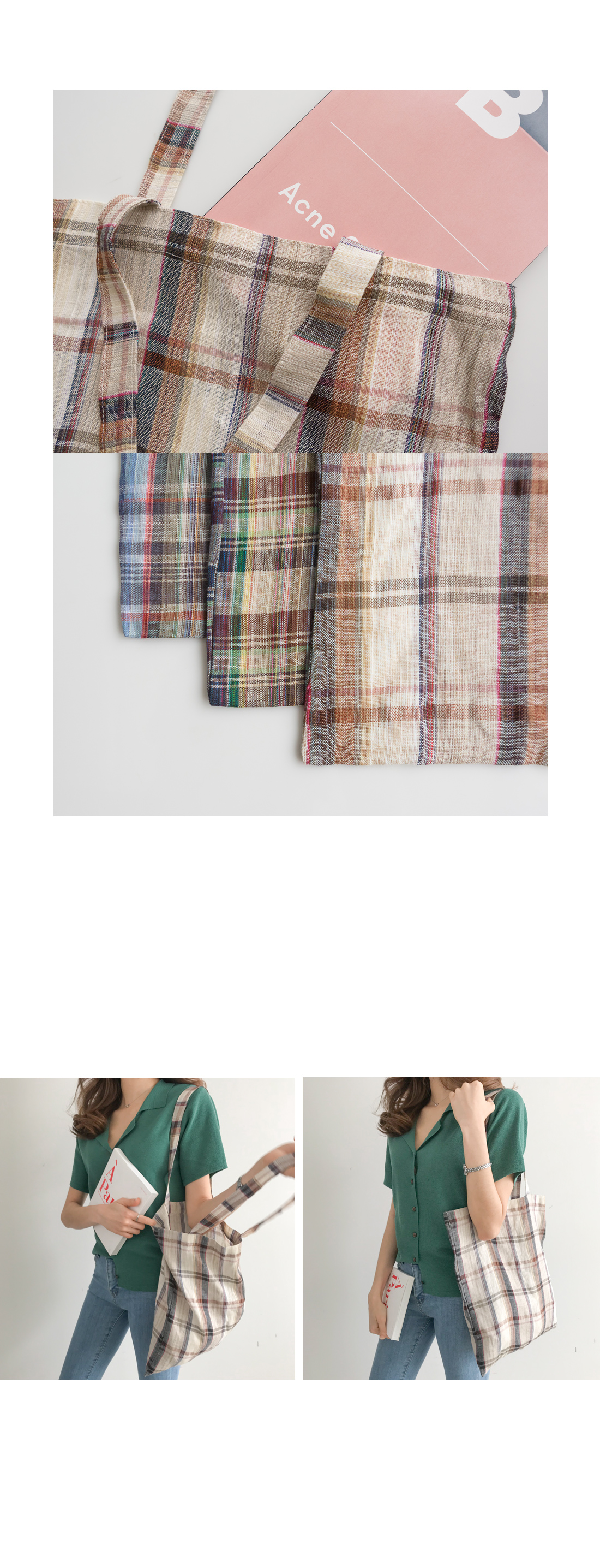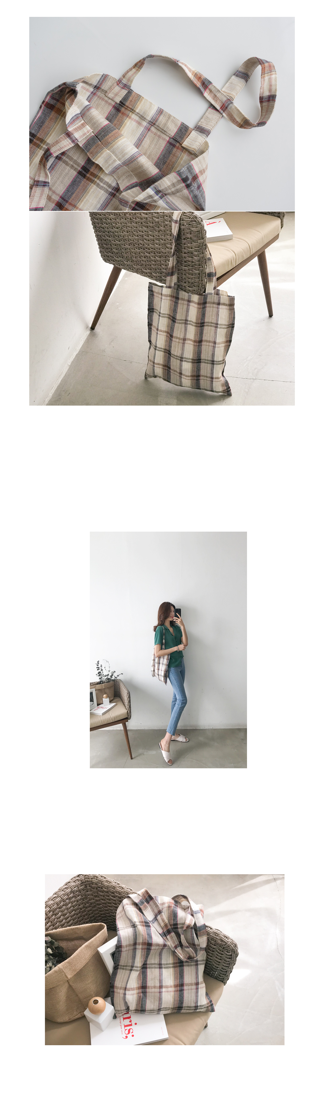 체크 린넨 숄더백 #84712