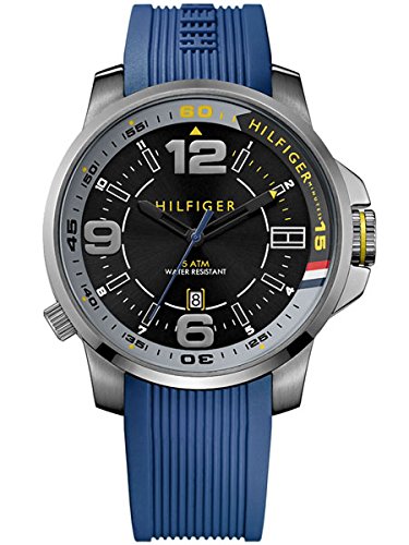 -. Binding : Watch -. Brand : Tommy Hilfiger -. Color : Blue/Black -. Department : mens -. EAN : 0885997110679 -. Feature : Sporty watch featuring numbered outer dial, skeleton hands, and date window at 6 o'clock / 46 mm stainless steel case with mineral dial window / Quartz movement with analog display / Ribbed silicone band with molded branding and buckle closure / Water resistant to 50 m (165 ft) -. Label : Tommy Hilfiger -. Manufacturer : Tommy Hilfiger -. Model : 1791010 -. MPN : 1791010 -. PackageQuantity : 1 -. PartNumber : 1791010 -. ProductGroup : Watch -. ProductTypeName : WATCH -. Publisher : Tommy Hilfiger -. ReleaseDate : 2014-04-17 -. Size : Standard -. Studio : Tommy Hilfiger -. Title : Tommy Hilfiger Men's 1791010 Stainless Steel Watch -. UPC : 885997110679