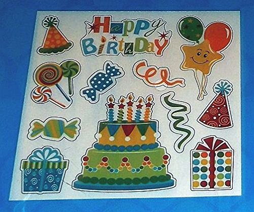 -. Feature : Over 10 Refrigerator Magnets / Overall size of sheet of magnets is 10 inches x 10 inches / Blues, reds, yellows, greens / Magnets include cake, presents, candy, party hat, balloons, "happy birthday" / The cake magnet is approximately 4 1/2 inches x 5 inches