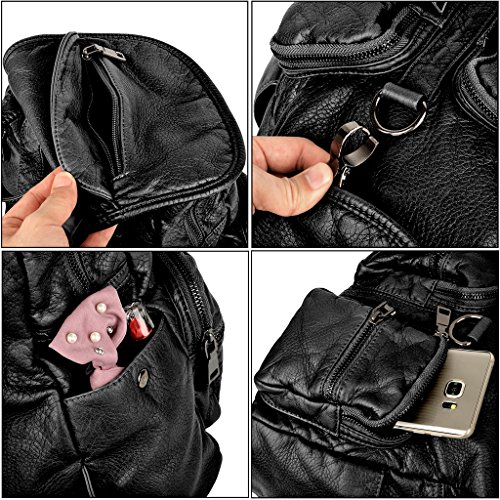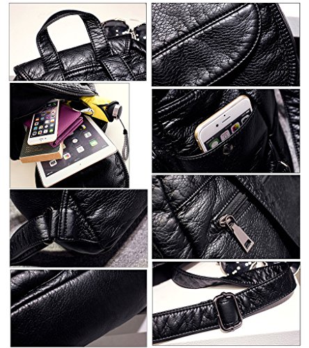 -. Title : UTO Women Backpack Purse PU Washed Leather Ladies Rucksack Shoulder Bag Black
