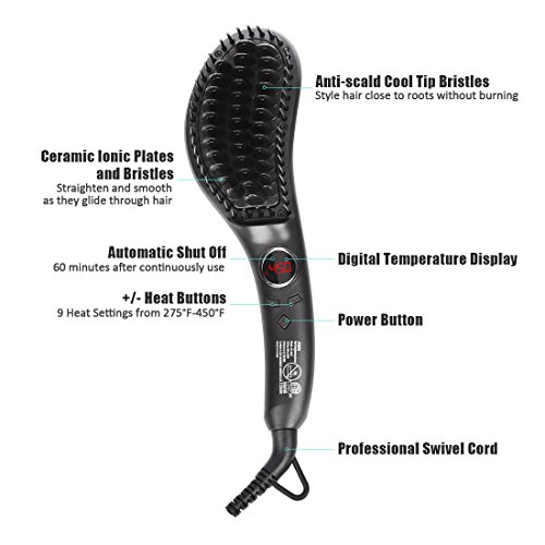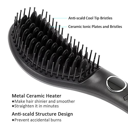 Hair Straightener Brush - Electric Ionic Ceramic Hair Straightening Brush,Hot Fast Heating Straightener Brush,Tempreture Lock & Auto Shut Off Function,Black