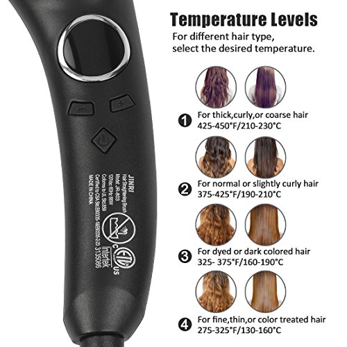- ▶【Heat Setting】Offers four different temperature setting from 275˚F to 450˚F (130°C -230°C), and fulfill all your needs for various hair styles and conditions.Suitable for all hair types: thin, fine, bleached, wavy or curled.