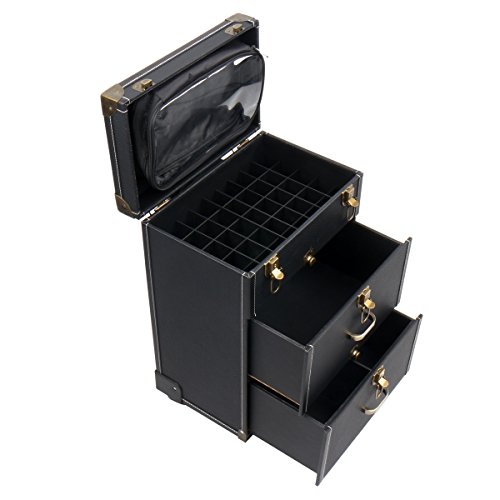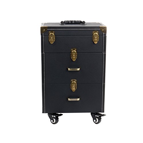 (SEYMOUR CASE)/Bags/Cases/Train Cases/DIRECT FROM USA/Black PVC Rolling Makeup Cosmetic Train Case Lockable Wheeled Box Artist
