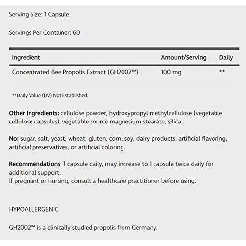 Propolis is a nutrient-packed substance produced by bees. It has been used for thousands of years to promote immune health and overall wellness. Researchers have identified hundreds of health-promoting compounds in propolis.* Propolis Extract features clinically-studied GH2002TM propolis. Because it contains no inert beeswax, it can provide more key immune-supporting compounds compared to unpurified propolis, which may contain wax and other impurities.* • Clinically Studied GH2002TM • Strong Immune Support • Supports Healthy Bacteria Balance* • 100% Bee Propolis, No Beeswax • Hypoallergenic*Feature