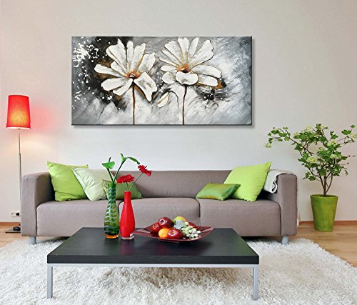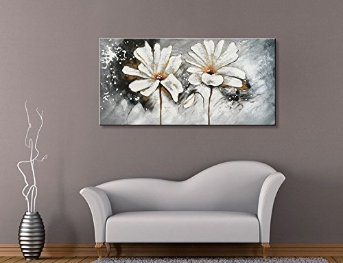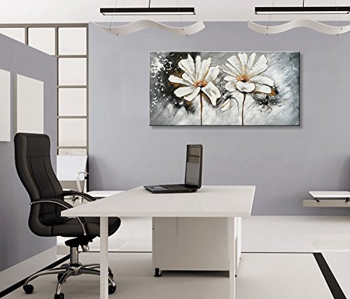 Hand painted white flower oil painting on canvas. This handmade canvas wall art for living room, bedroom, kitchen, office, Hotel, dining room, bathroom, bar etc.