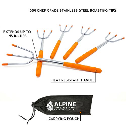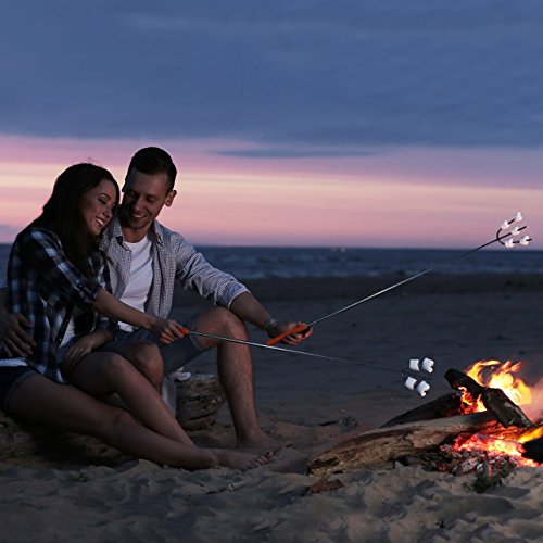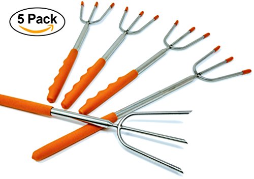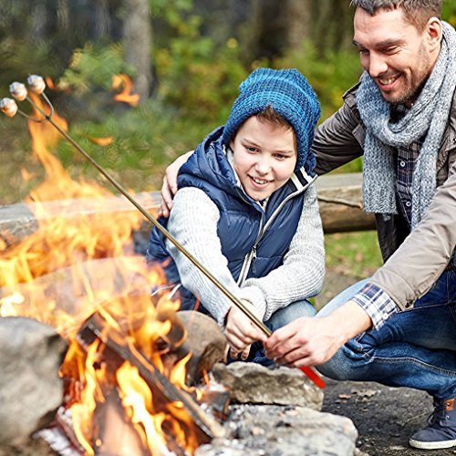 UPGRADED Marshmallow Roasting Sticks - 3 Prong Telescopic Forks - 45.5" Extra Long Smores and Extending Hot Dog Skewers - BBQ, Campfire, Fire Pit, Camping, and Hiking Accessories