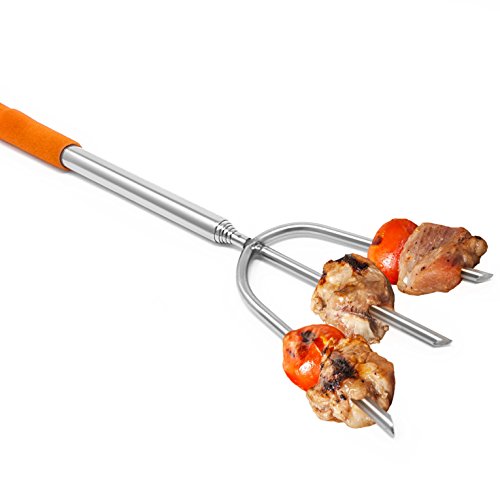 PORTABLE design easily retracts and stores in the INCLUDED CARRYING CASE. Each skewer comes with three rubber safety tips making them safe to transport and carry to BBQ’s, picnics, campsites and cookouts!