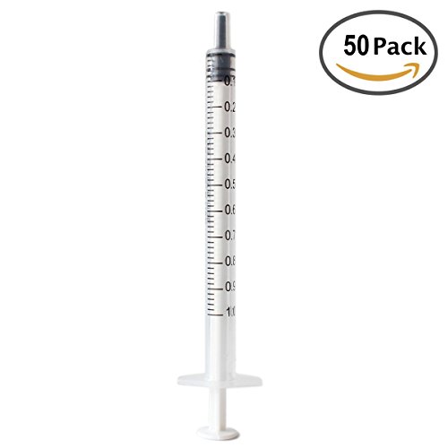 1ml 1cc Syringe with Luer Slip Tip, No Needle, Non-Sterile (Pack of 50)