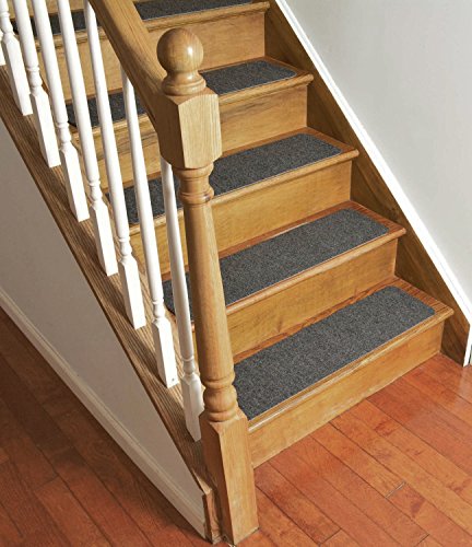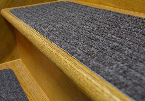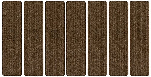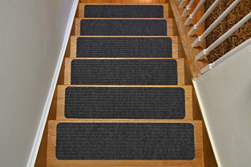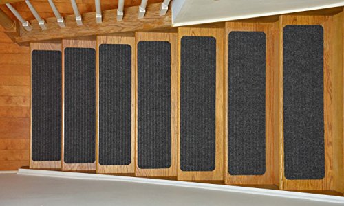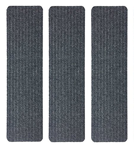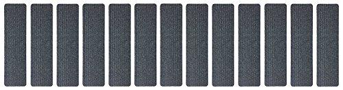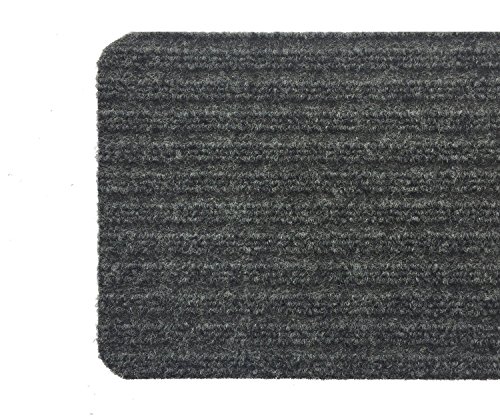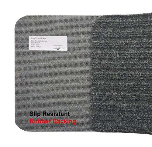 Our indoor stair treads offer 100% UV treated Olefin machine made construction with skid slip resistant marine backing. Strong construction for tough conditions. Made In USA. Rug Styles is the manufacturer and Rug Styles Online is the only authorized seller of this product. We can not guarantee any quality or description accuracy of the purchase you make from any other seller. Made In USA | 100% UV Olefin | Slip skid resistant rubber backing works on most of the floor types | Easy to vacuum and clean low profile | Corrugated construction for better traction and liquid flow | In order to keep stair treads securely in place, we suggest to use double-sided carpet tape (not included) Stair Tread Size : 8 inch x 30 inch | Color: Dark Grey | Includes : Set of 13 Stair TreadsFeature