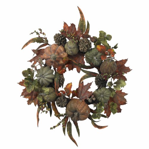 Nearly Natural 4902 Pumpkin and Gourd Wreath, 24-Inch, Green/Orange
