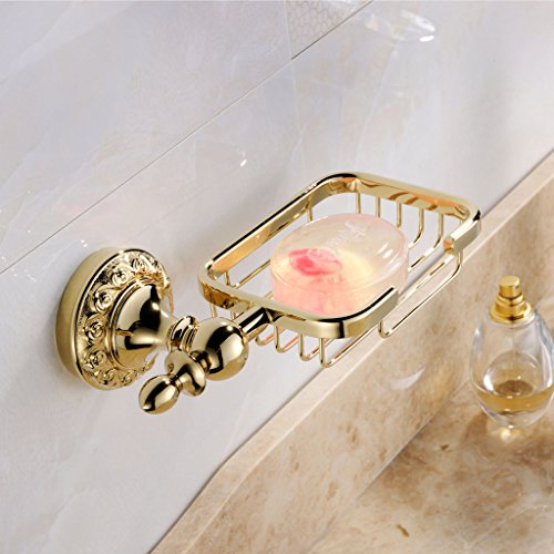 -. Title : Leyden Wall Mount Bathroom Golden Ti-PVD Finish Brass Material Soap Dishes Basket