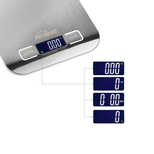 Kealive Digital Kitchen Scale 5000g / 11lb Multifunction Stainless Steel Food Scale with LCD Display for Home Daily Use ( 2 AAA Batteries Included )