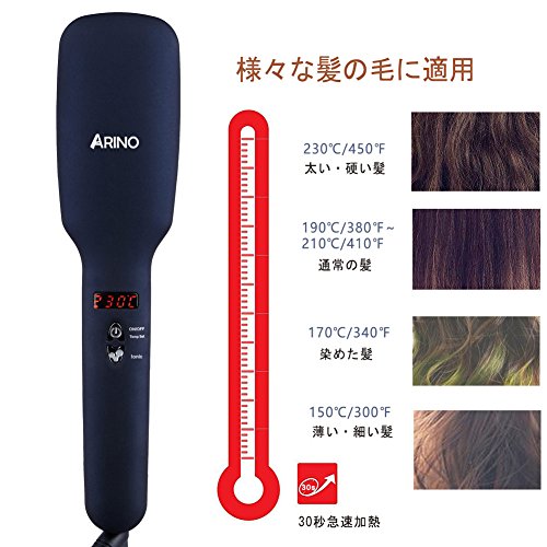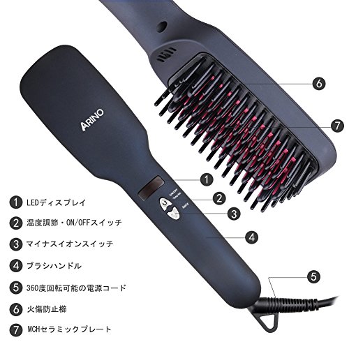 원본상품명: ARINO ストレト ヘアアイロン ブラシ マイナスイオン ストレトブラシ くし型アイロン 2way 230度 耐熱グロブ オトロック 火傷防止 癖直し 電防止 頭皮マッサジ もつれ解