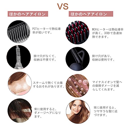 【급속 가열360도 회전 코드】MCH히터는 열전도율이 높고, 순식간에 뜨거워지고, 30초에 급속 가열,시간이 없는 아침으로 보물(보배) 합니다.매끄럽고 빛나는 곧장이 헤어에,언제라도 재빠르게 할 수 있습니다.하드한 움직임에 대응 할 수 있는360°회전 코드로,코드가 얽히지 않는 바와 같이(하도록),좋아하는 각도로 설치에 옵니다. 【액정 디스플레이 탑재】액정 화면에서 온도가 표시되어버튼이 전면 에 있는 때문에,측면 에 있는 것보다(부터)도 간단하게 콘트롤 성과,버튼의 오조작을 막습니다.정전방지,말썽(분규) 해제,아름다운 스타일링을 작성 성과,머리를 건강하게. 【5단계 온도 조절】150℃부터 230℃까지 5단계 온도 조절 가능합니다.연모세모 데미지모경 모태털 어떤 머리카락의타입의 사람에서도 괜찮습니다.온도가 오른 상태에서도 브러시의 주연부부분이 어느(있는) 모아 두고, 만일 손으로 쥐어 버리거나 닿아 버려도그 부분은 뜨겁지 않기 때문에 화상 심장배도 없습니다. 【자동 록&전원 오프】자동 온도 록 콘트롤 부착.25 분이상 사용하지 않고 있으면,뜨거워진 브러시를 자동적으로 전원 오프 합니다.단열 사양으로 화상을 방지합니다.또한 머리를열에 의한 데미지부터 지킵니다. 【스트레이트고데기】마이너스 이온 분사구를 탑재 하고 있으므로,약600만개의 마이너스 이온이 방출되고, 윤택한 효과가 얻어지고, 큐 T《구루》를 보호 하면서,열에 의한 머리카락에의 데미지를 경감해 줍니다.발미끄러짐도 잘 아름다운 마무리되어 입니다. 부드러운치에 머리를 전율하 # 데 있어서 걸리가 신경이 쓰이는 분이나 두피에 맛사지 효과를 줍니다.