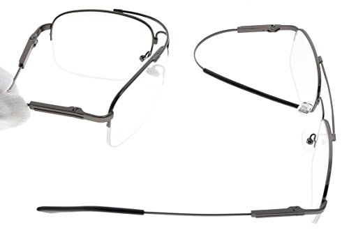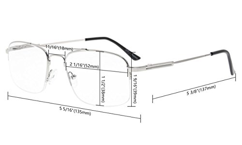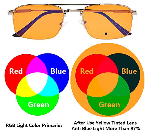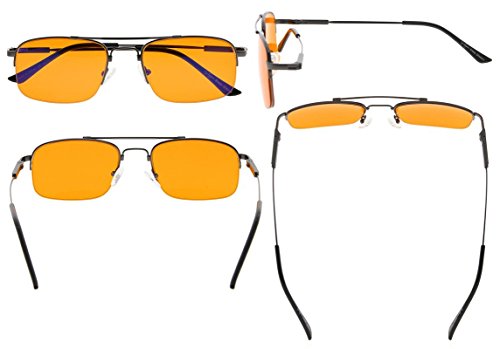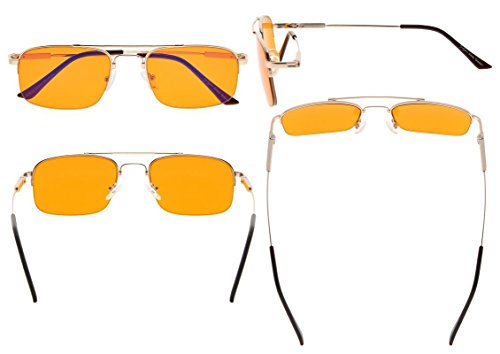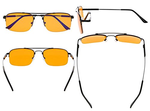 -. Feature : PRODUCTS DIMENSION-Frame Material: Titanium and metal, Lens width: 2 1/16"(52mm), Frame width: 5 5/16"(135mm), Lens height: 1 1/2"(38mm), Frame height: 1 9/16"(39mm), Bridge (DBL): 11/16"(18mm), Temple length: 5 3/8"(137mm), Spring hinge: Yes, Lenses: Aspheric, Head size: Medium. Rx-able frame / EYEKEPPER HALF RIM SLEEP EYEGLASSES-Wearing this glasses while working in front of a computer or playing games can prevent visual fatigue and headaches, anti all harmful blue light, designed for anyone using an electronic device such as computers, T.V.'s or phones. This meets the requirements of the U.S. FDA, and exceeds European Union requirements / EYEKEPPER COMPUTER GAMING GLASSES-Included a microfiber cloth and hard foldable case. Superior Blue Light Blocking Computer Glasses that will reduce eye strain when working on a computer, tablet, phone or television. Excellent for Relieving Visual Discomfort and fatigue associated with using a computer for long periods of time / QUALITY TITANIUM FRAME-FDA Registered Reading Glasses and Eyewear, Accord with ANSI Z80.3-2010, Accord with BS EN ISO 12312-1:2013 and EN14139:2010, Accord with AS/NZS 1067:2009, Top quality metal frame, lenses and have spring-loaded hinges