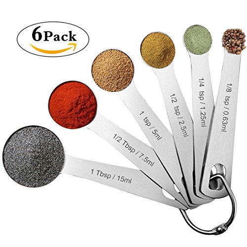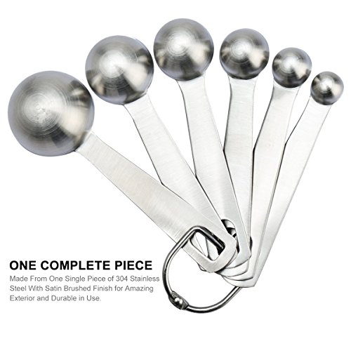 - 6-piece set includeds 1/8 tsp, 1/4 tsp, 1/2 tsp, 1 tsp, 1/2 tbsp and 1 tbsp, clear scale unit design, powder and liquid through a spoon to get you easy to use