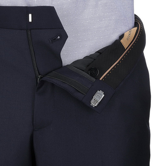 - 솔리드 디자인의 미니멀한 남성 수트 팬츠.