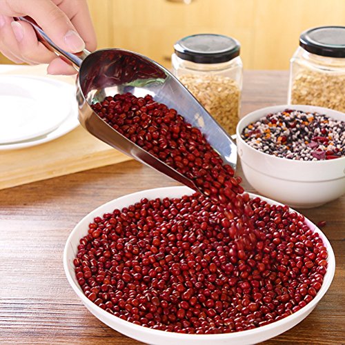 -. Feature : Made of stainless steel material,solid and high quality,lightweight and Easy to use / Total Length:22cm/8.7inch,Handle Length:9cm/3.5inch / This scoop can help you take sugar or ice,popcorn,coffee bean more easily / Multi-Function:Wheat,Cereals,Spices,Cooking Ingredients Cereals,Coffee Beans,Tea,Pet Food and more / Package included:2 Pcs Stainless Steel Ice Scoop