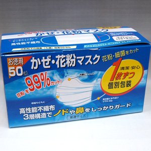 -. Title : 1枚ずつ個別包装のかぜ・花粉使い捨てマスクお徳用マスク 50枚(175mm×95mm)