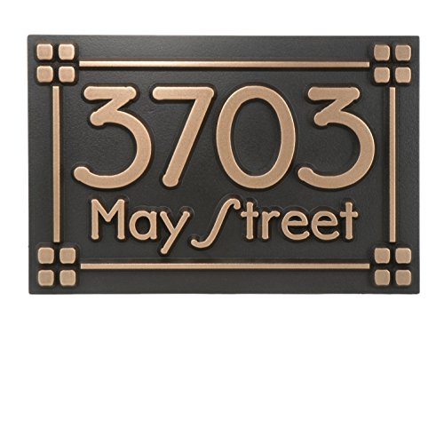-. Title : Prairie Style Craftsman Address Lines and Squares 12x8 - Raised Bronze Metal Coated House Numbers