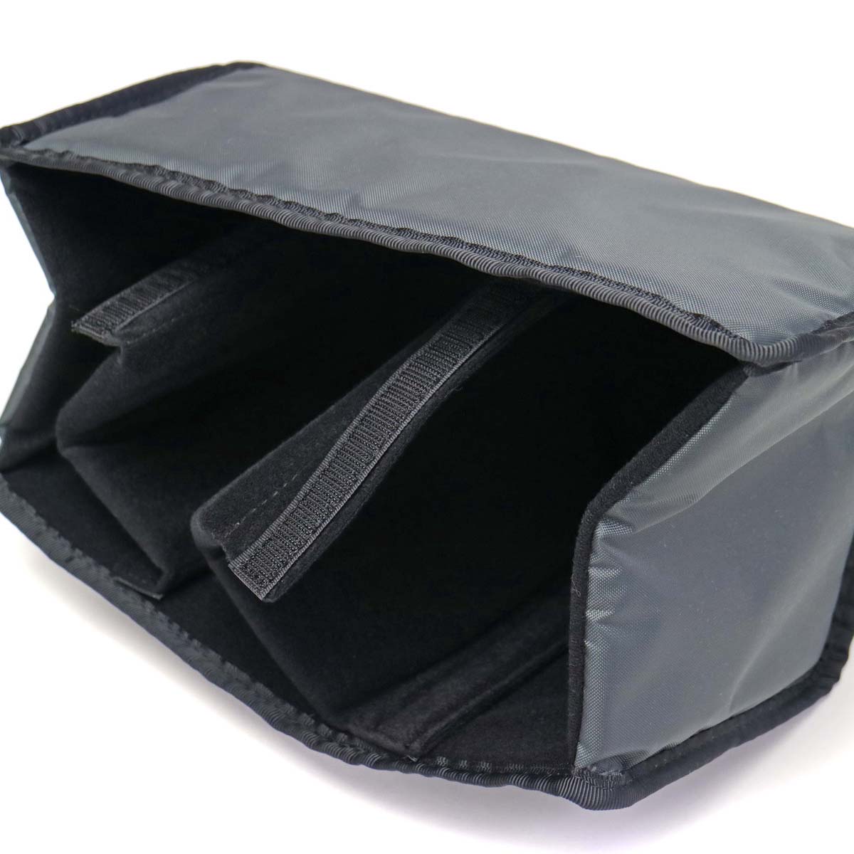 The inner cushion that protects the camera can also be removed. Because the inner cushion has a detachable partition, you can freely divide it according to the size of the camera and the stored items.