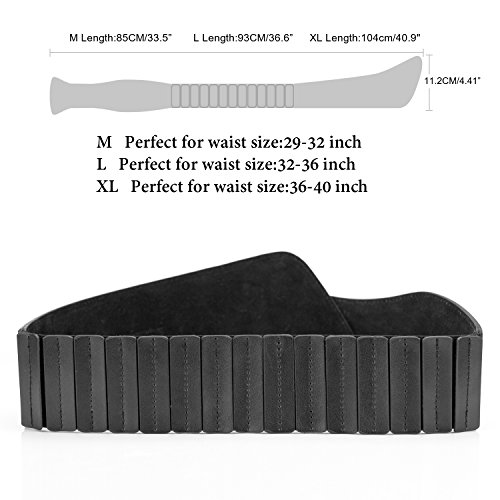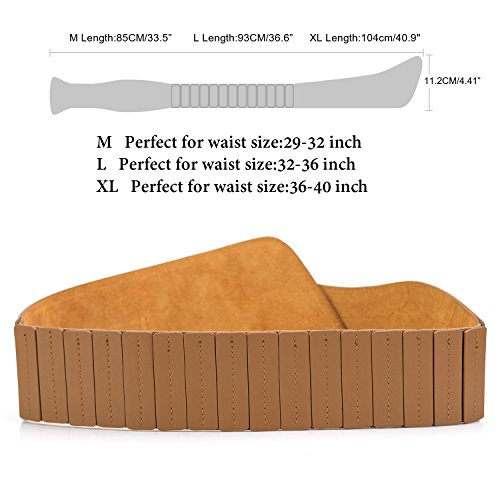 -. Feature : This Vintage Wide elastic waist belt made of high-end cowhide leather and High Elastic Waist Band with retro alloy buckle / Various color and size selection(Black,Coffee,Brown):33.5" suit for waist size 29-32",36.6" suit for waist size 32-36",40.9"suit for waist size 36-40" / A perfect single item for your dress, skirt, sweater, down jacket, stylish costumes accessory for daily or special occasion. / This High-end Elastic Waist Belt makes you look fashion, classy and noble in any time any occasion.A nice gift for women,mom,lover,daughter and female friends on Valentine's day,Thanksgiving Day, Christmas day and New Year. / Order with no risk - We promise 0 risk purchase, 45 days free exchange and return, 360 days warranty. In any case, leave us message to get the most satisfying solution.100% satisfaction guaranteed.