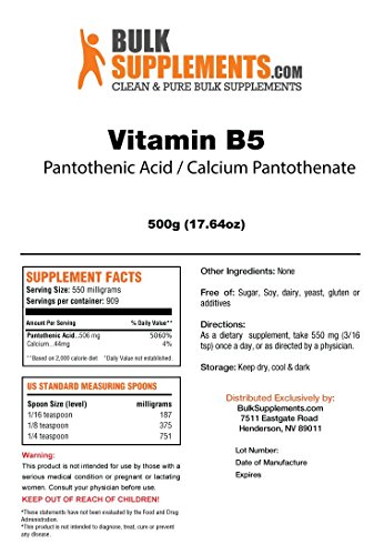 - Title : BulkSupplements Vitamin B5 Calcium Pantothenate / Pantothenic Acid (500 grams)