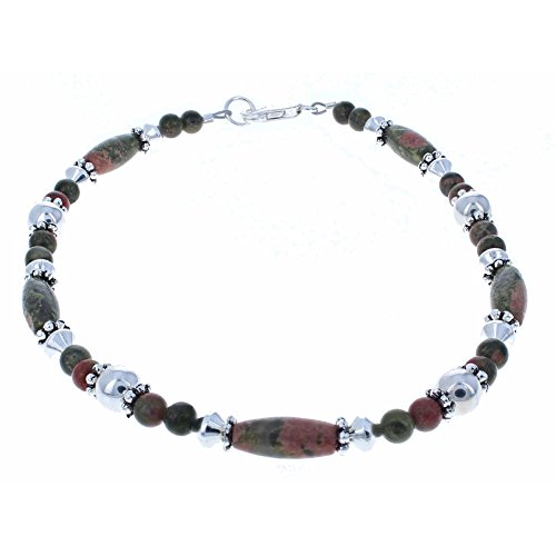 -. Title : Womens Sterling Silver & Unakite Ladies Beaded Gemstone Anklet with Daisies
