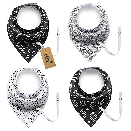 -. Title : iZiv 4 PACK Baby Bandana Drool Bibs with Adjustable Snaps Pacifier Clip, Organic Absorbent Bibs, 0-2 Years