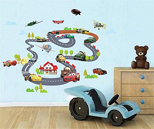 -. Title : ufengke Cartoon Racing Car Aircraft Wall Decals, Children's Room Nursery Removable Wall Stickers Murals