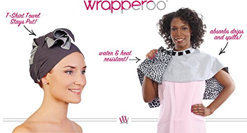 Studio : Wrapperoo® Publisher : Wrapperoo® Binding : Misc. Product Description Patented 2-in-1 Wrapperoo® is a T-Shirt Hair Towel and a Styling Cape that takes the mess stress out of your hair beauty routine. Wrapperoo's custom engineered absorbent t-shirt towel fabric gently dries wet hair, reducing frizz and breakage. The water heat resistant cape keeps you clean dry from hair beauty products, sprays, serums, make-up, hair color, and all that mess! As Seen On ABC's Good Morning America, Good Housekeeping magazine and HSN (Home Shopping Network). 0