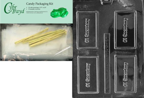 Cybrtrayd "No.1 Secretary" Business Card Chocolate Candy Mold with Packaging Bundle of 25 Cello Bags, 25 Gold Twist Ties and Chocolate Molding Instructions