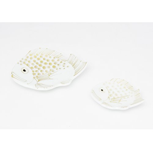 송화당 아리타산 도자기 도미형 작은 접시 친자 세트(백자 금채) 6cm/8cm 복주가마 hkj0482