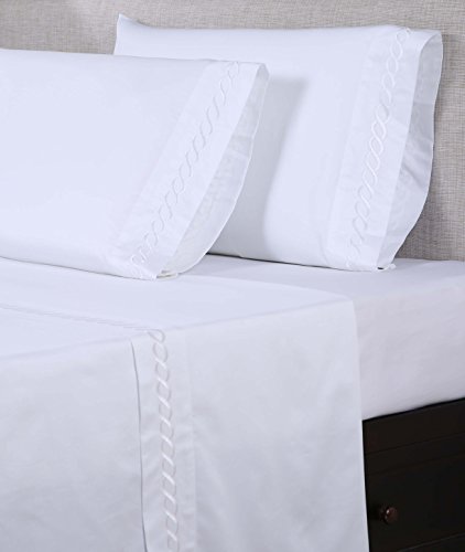 Affluence 600 Thread Count 100% Cotton Embroidered Pillowcase Sets - Chain Pattern (Standard/Queen Pillowcase Set, White/White)