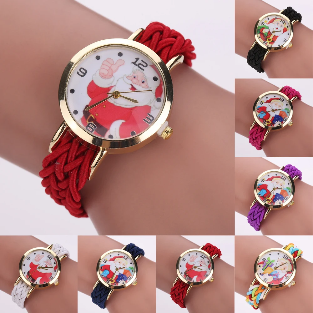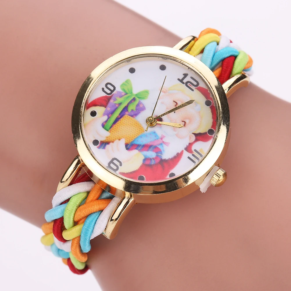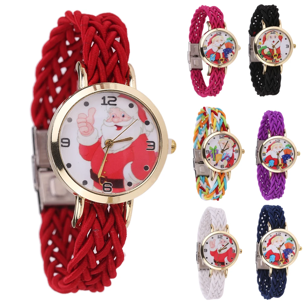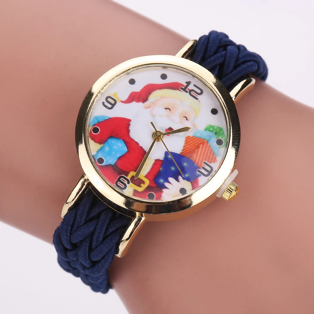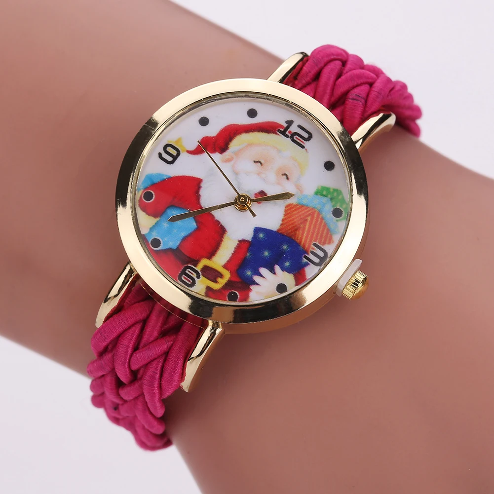 새로운 패션 산타 클로스 골드 다이얼 여성 Gilrs 손목 시계 크리스마스 선물 팔찌 시계