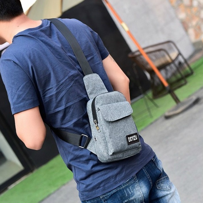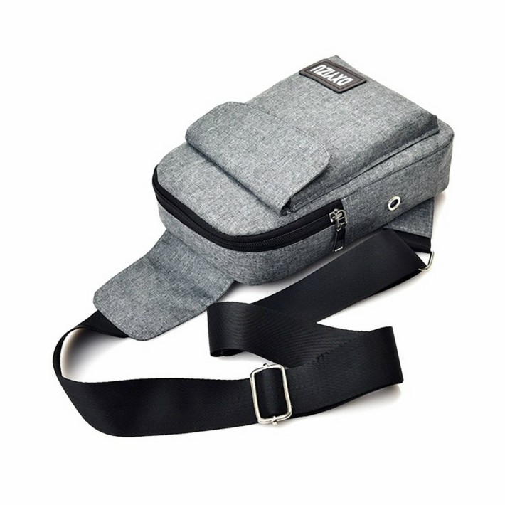 ボディバッグ ワンショルダー 斜め掛け 縦型 大容量 軽量 イヤホンコード 穴付き グレー