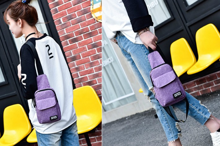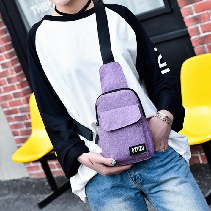 ボディバッグ ワンショルダー 斜め掛け 縦型 大容量 軽量 イヤホンコード 穴付き パープル