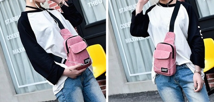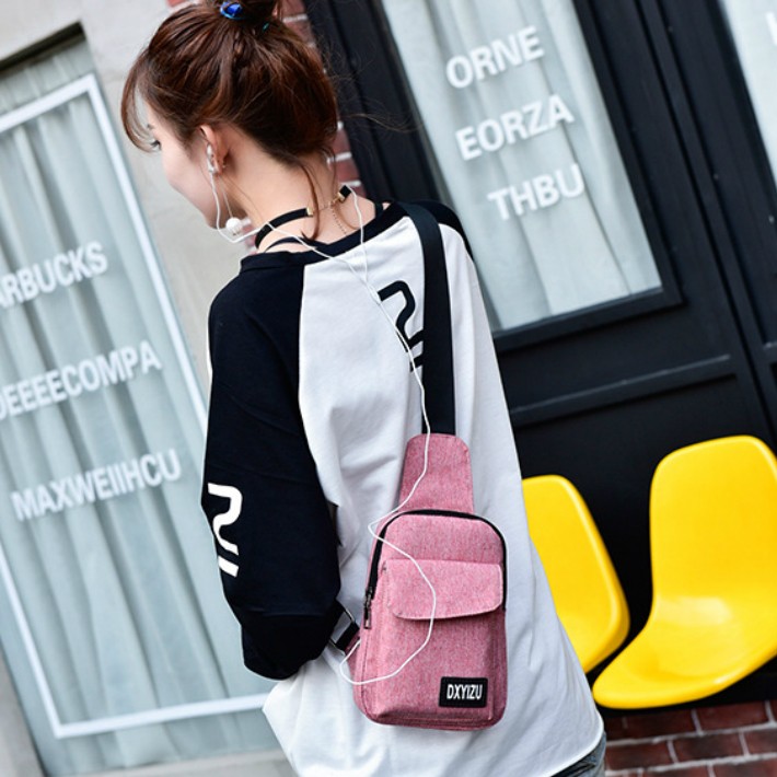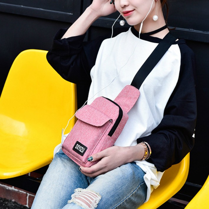 イヤホンコードが通せる穴を施した実用性が高く、カジュアルな斜め掛けのボディバッグです。