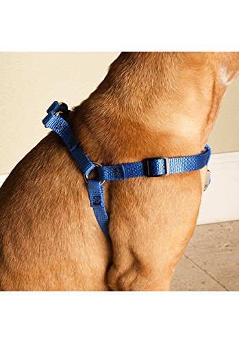Studio : Majestic Pet Products, Inc. Publisher : Majestic Pet Products, Inc. Binding : Misc. Product Description 9-inch -15-inch Blue Step-In Harness by Majestic Pet Products is an easy harness to put on and allows for more control and comfort for the dog. With this adjustable harness simply place it on the floor, have the pet step inside, raise up and buckle. Attach a leash to both D-rings and your ready for walking. Made from durable nylon webbing, nickel-plated metal hardware and heavy duty bo by stiching throughout. 0