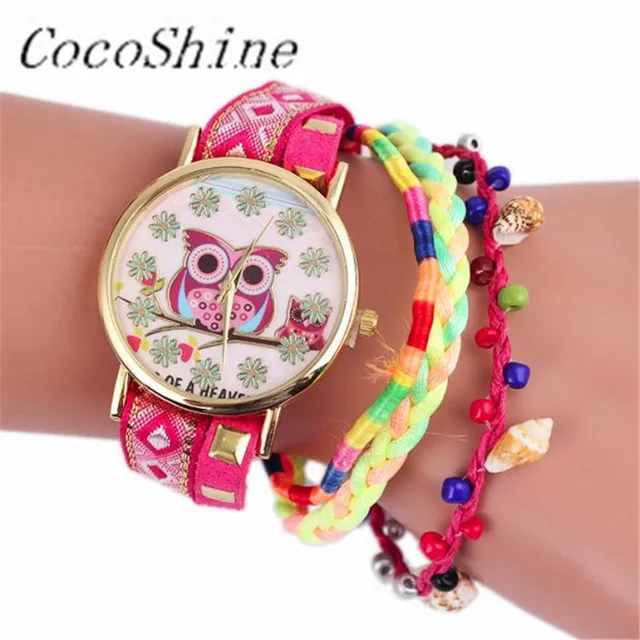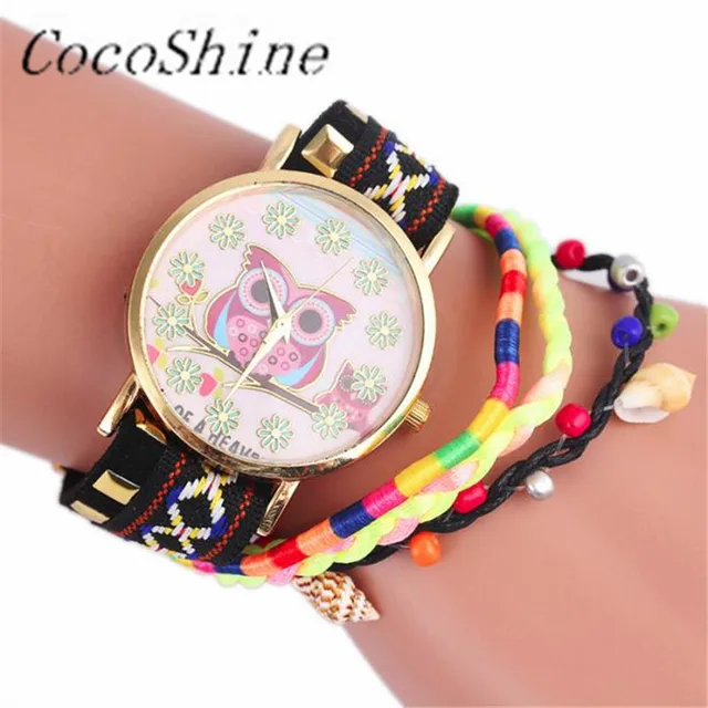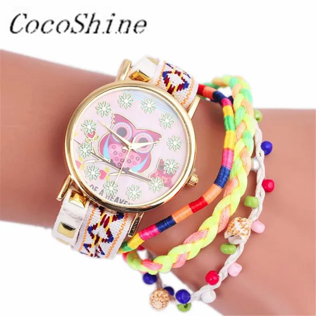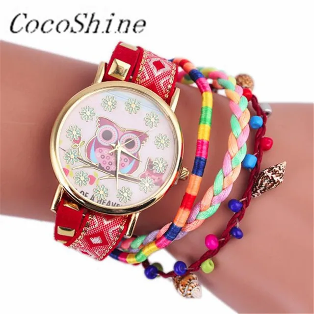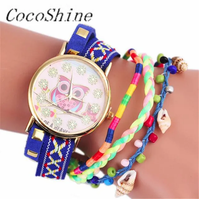 | [해외] CocoShine A-822 올빼미 패턴 뜨개질 다이얼 석영 캐주얼 손목 시계 팔찌 시계 도매 |